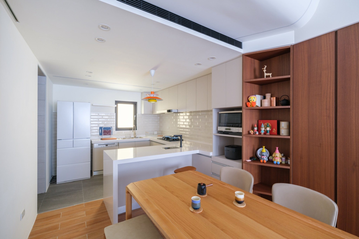 由於基地狹小,設計特別強調通風與採光的最大化利用。藉由將主要生活空間提升至二樓以上,不僅獲得更佳的視野,也有效避開街道層的噪音與隱私干擾。自然光線與風流穿梭於垂直空間之間,使住宅在緊湊的城市環境中,仍能保持明亮、通透與開放的生活品質。